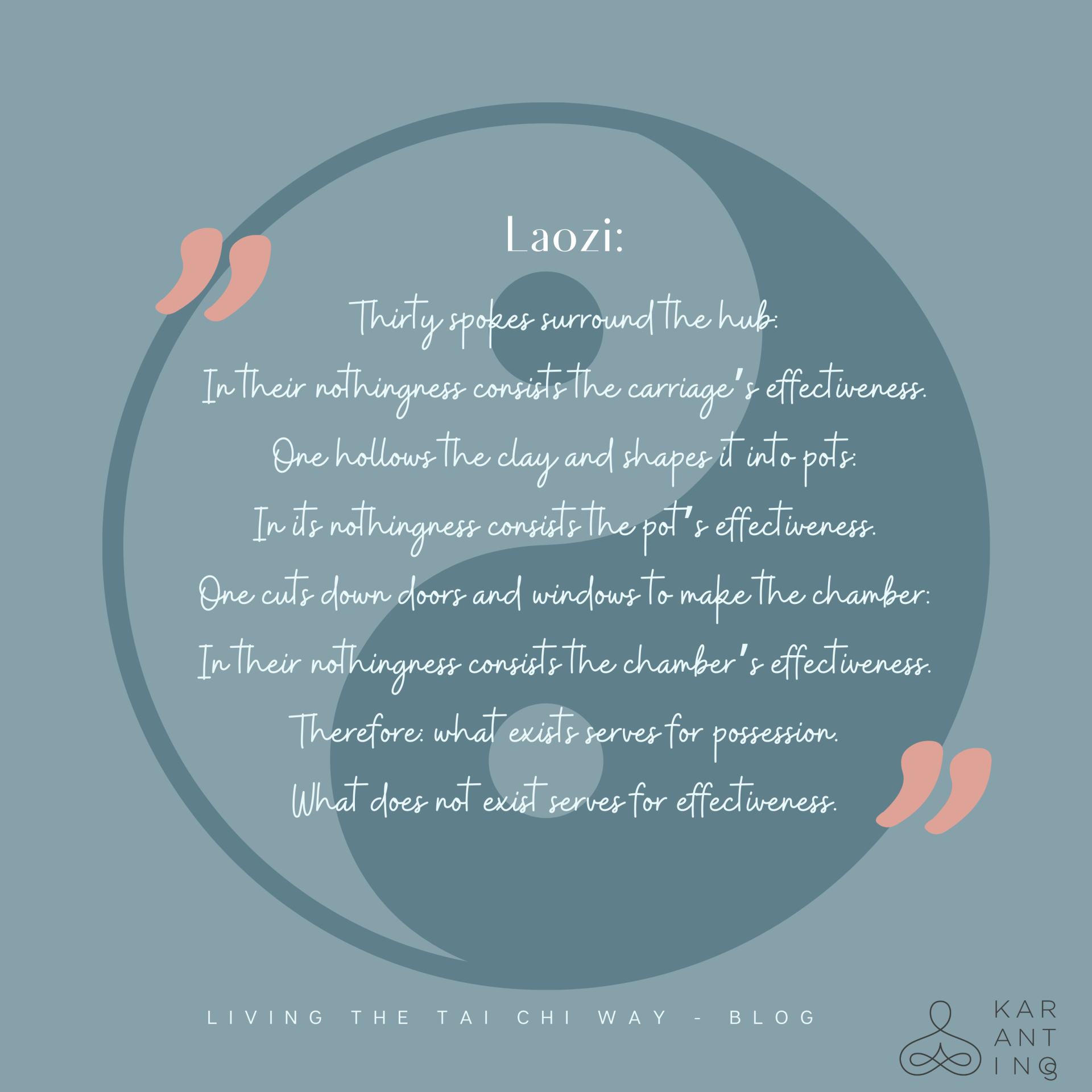 Another great example of the complementary nature of the opposites yin and yang is depicted in section 11 of the Dao De Jing, a Chinese text written around 400 BC, which is of unknown authorship.